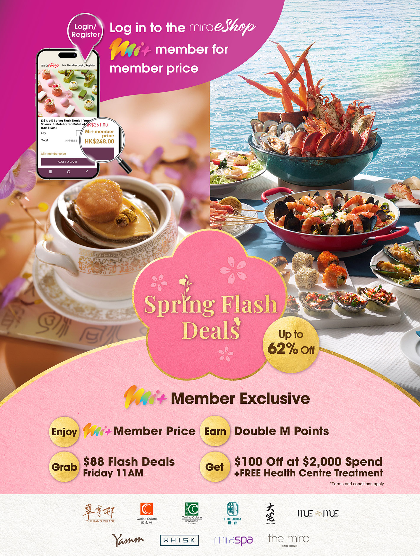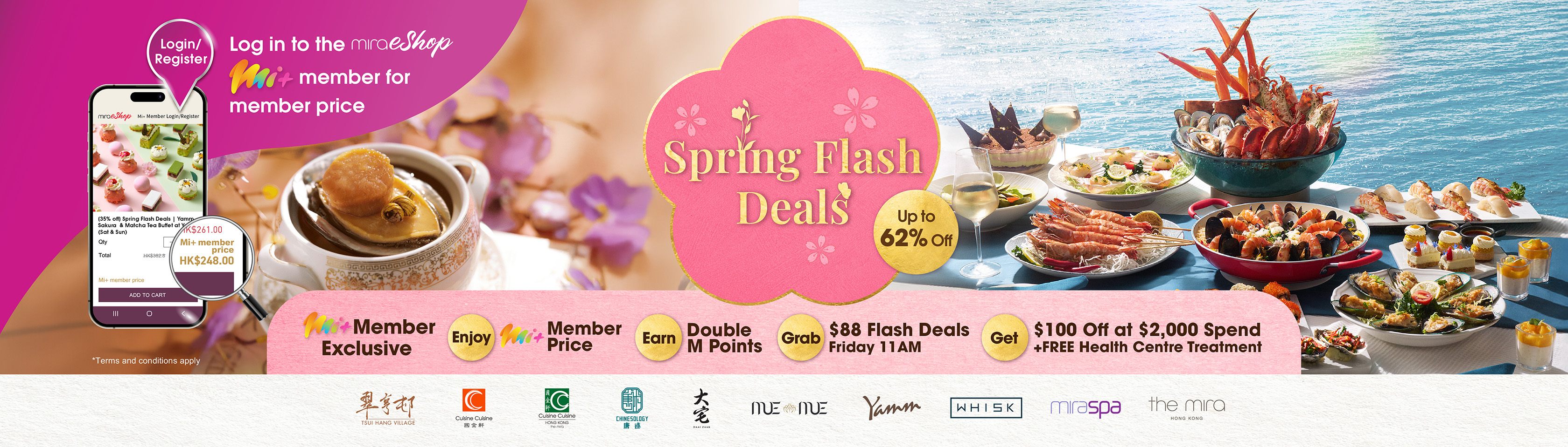 Mira Plus is the exclusive lifestyle membership offered by Miramar Group. Members may earn rewards and enjoy exclusive access to stays, dining, spa, shopping, travel deals, lifestyle events as well as year-round and seasonal offers via mobile app.