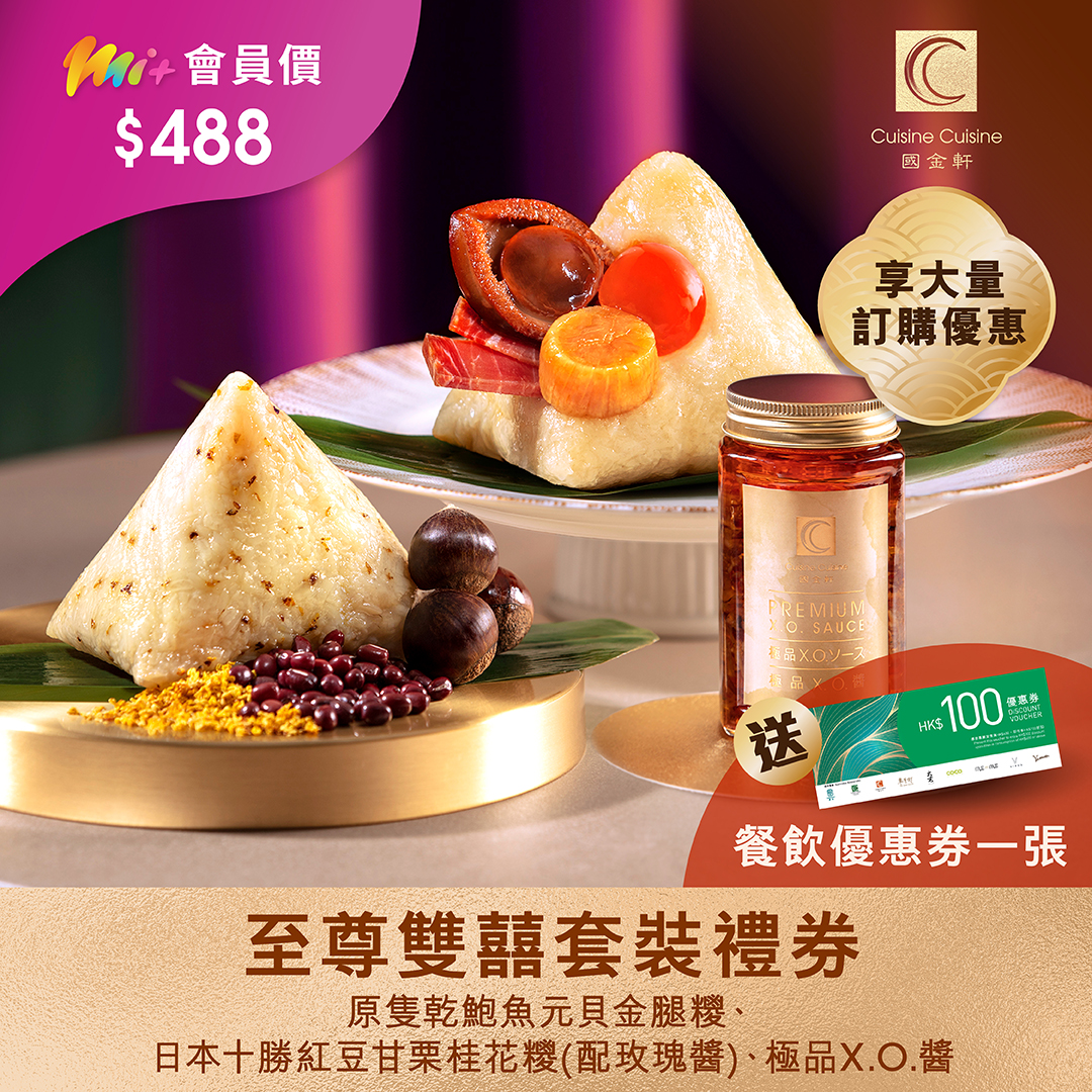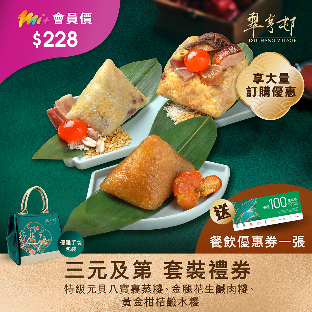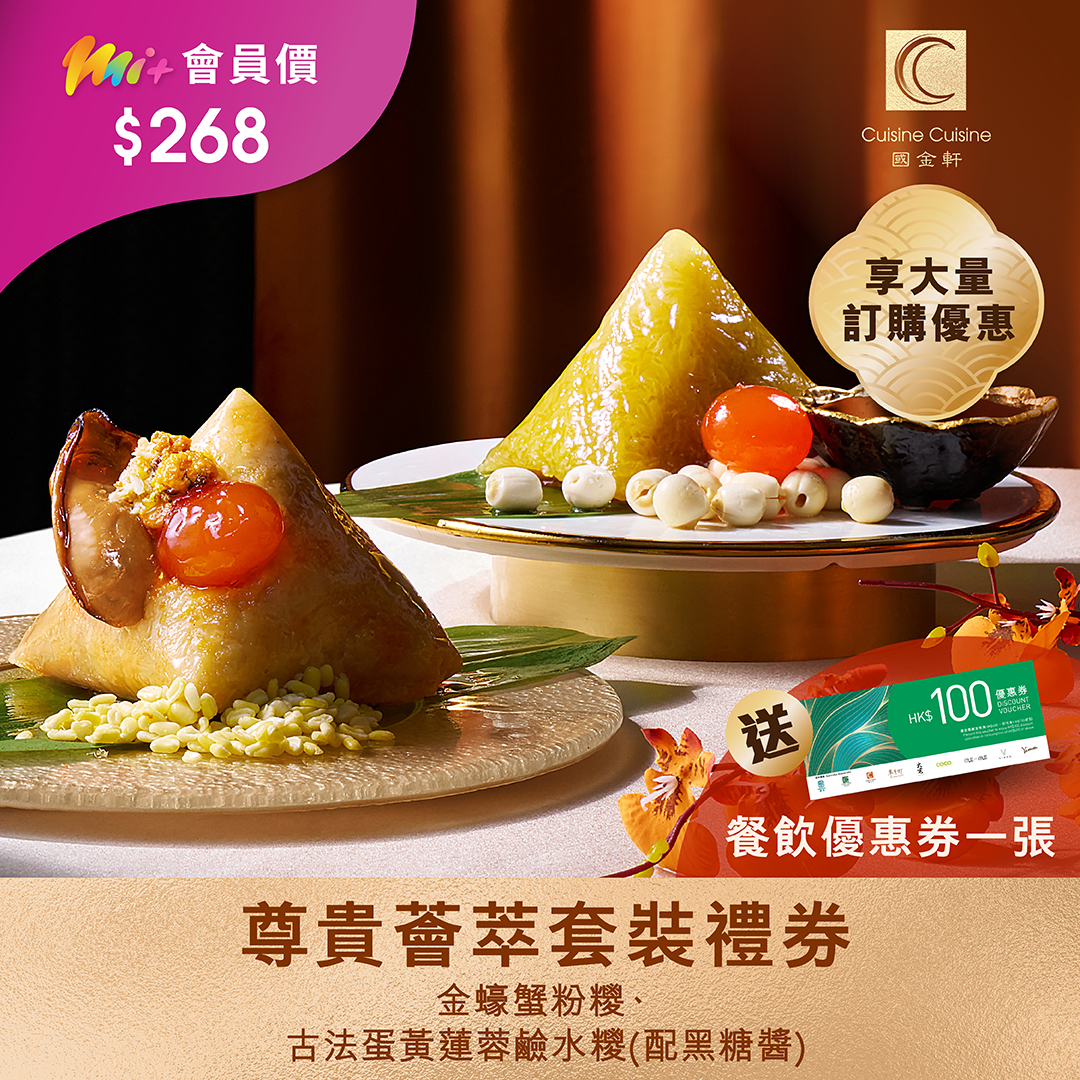 限時優惠: 凡於Mira eShop 預訂此套餐 可獲贈翠亨邨「兩全其美」端陽糭套裝電子禮券 (包括: 金腿花生鹹肉糭 及黄金柑桔碱水糭)